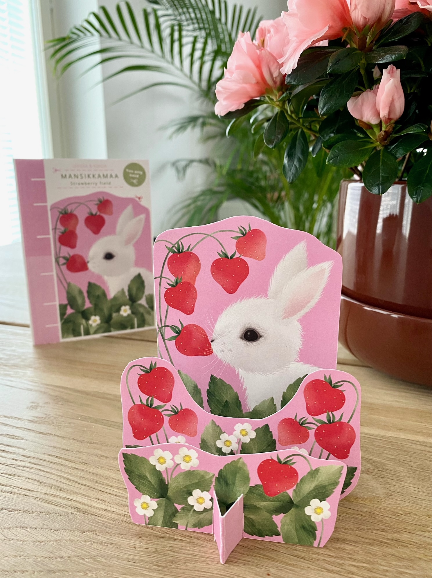 Leikkaa ja kokoa -kortista kortin saaja saa halutessaan leikata siitä pöytäkoristeen. Ei vaadi liimaa ja ohjeet kokoamiseen löytyvät suomeksi ja englanniksi kortin kääntöpuolelta.