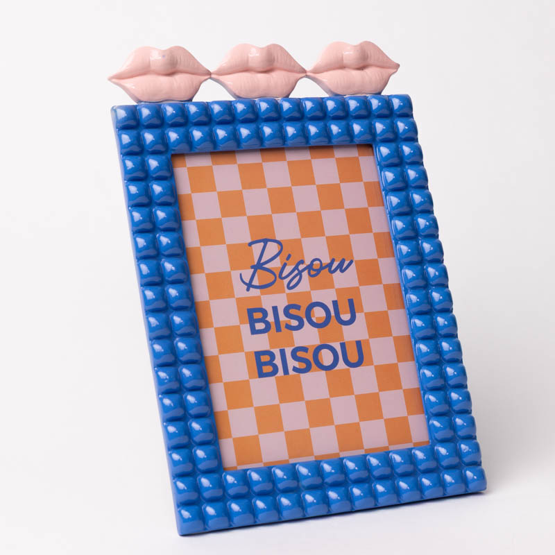 Kolme kertaa suukko! Tämä söpö sini-vaaleanpunainen kehys huokuu ranskalaista kepeyttä ja romantiikkaa. Teksti “Bisou, Bisou, Bisou” koristaa kehystä, mutta se on täydellinen valinta kuville, joissa on ripaus rakkautta tai ystävyyttä.